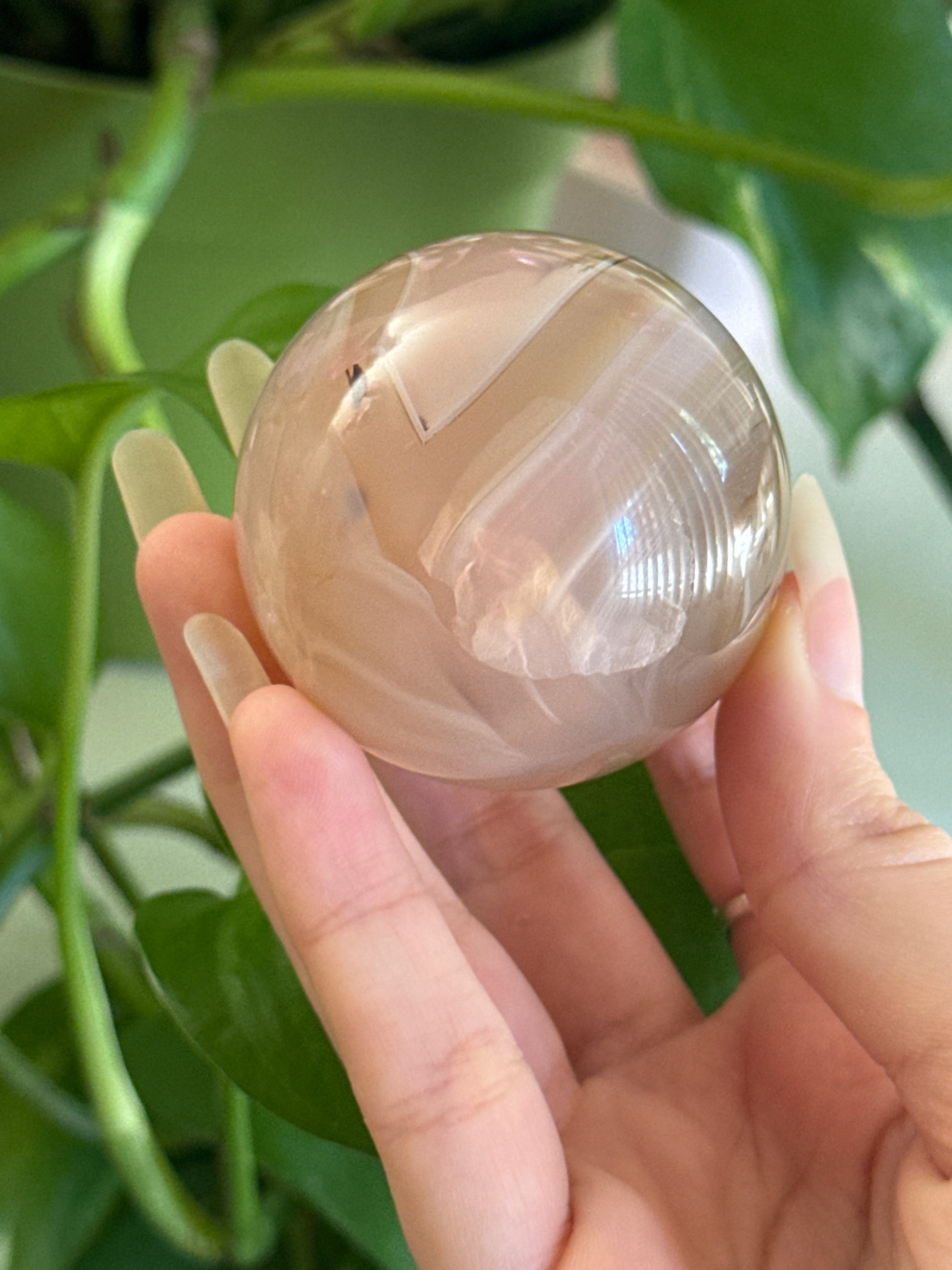 Unqiue Pastel Pink Jelly Agate Sphere