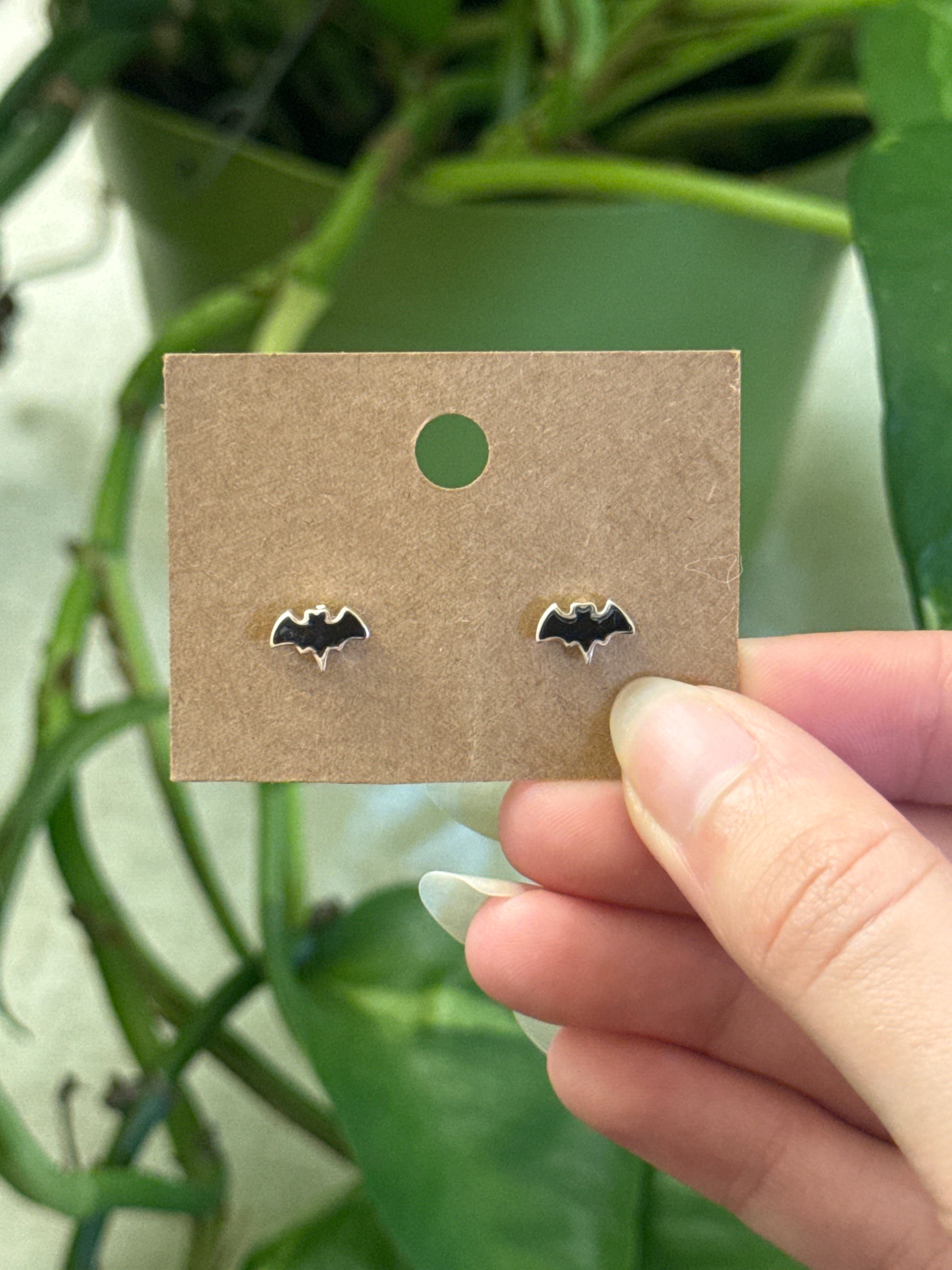 Black Tourmaline Bat Stud 925 Sterling Silver Earring