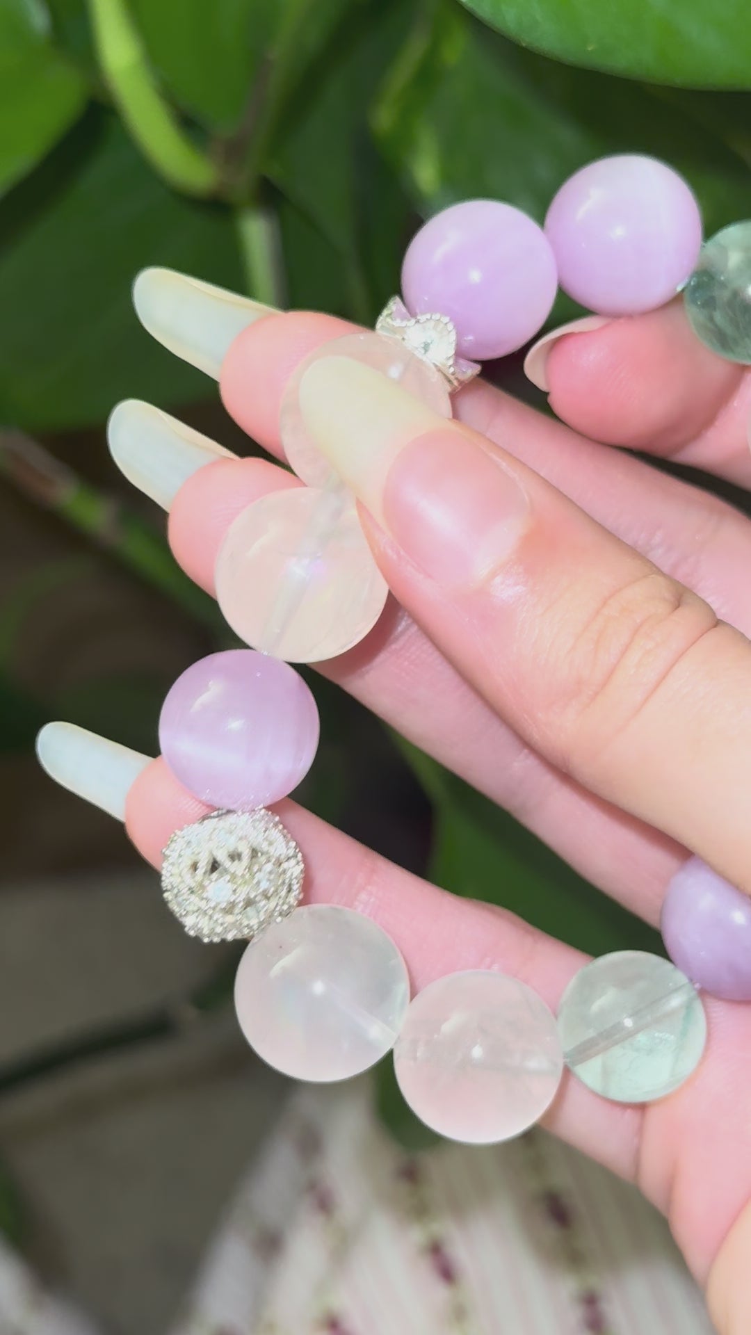 Rainbow Calcite, Cats Eye Kunzite, & Green Fluorite Chunky Statement Bracelet