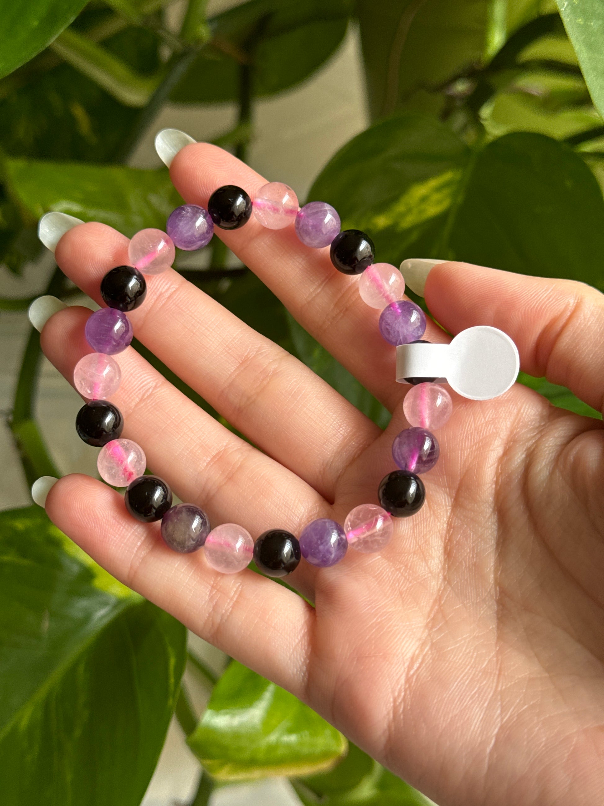 Rose Quartz & Amethyst & Obsidian Bracelet