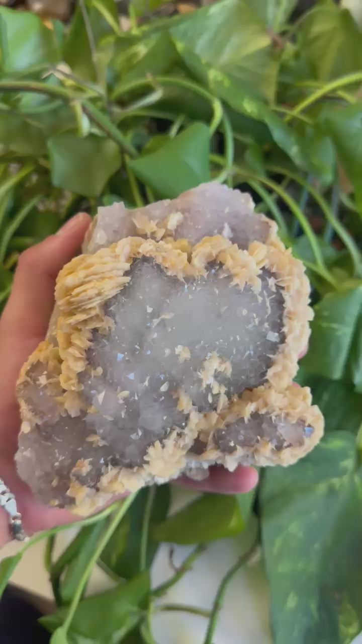 Feathered Calcite on Amethyst Specimen B