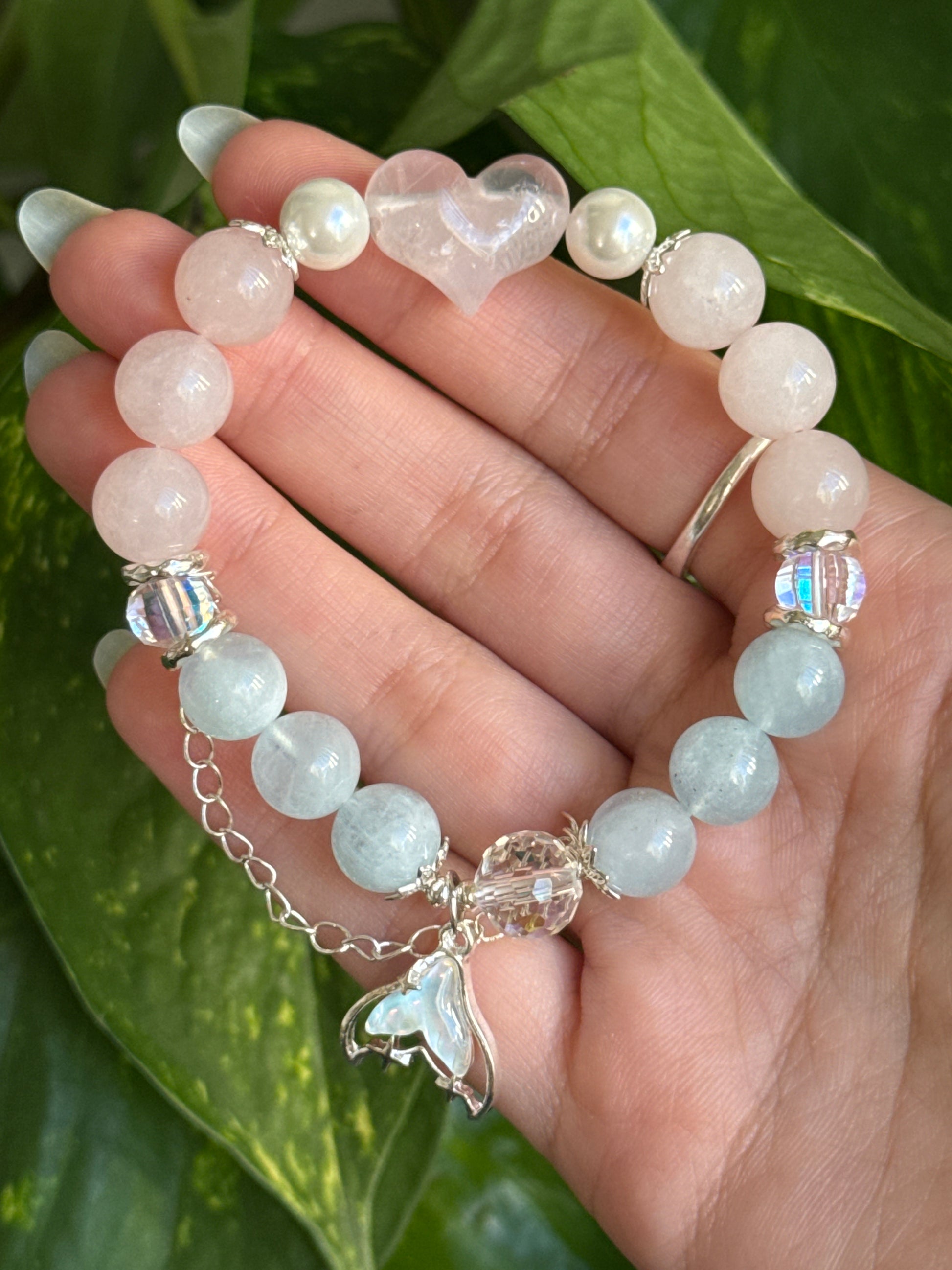 Rose Quartz & Pearl & Aquamarine Mermaid Bracelet