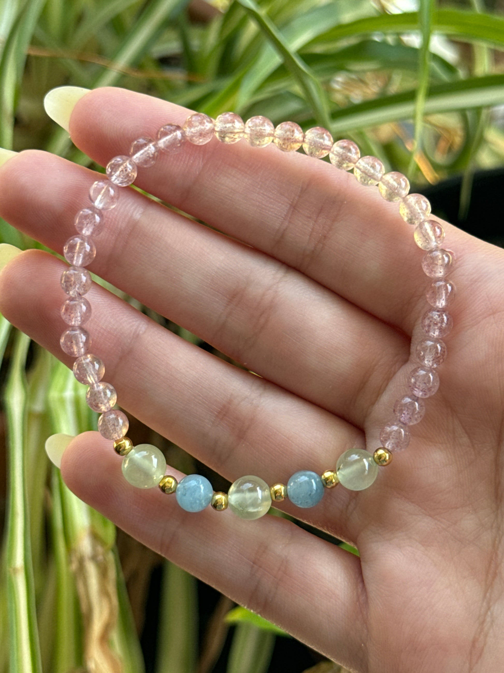 Strawberry Quartz & Prehnite & Aquamarine Bracelet
