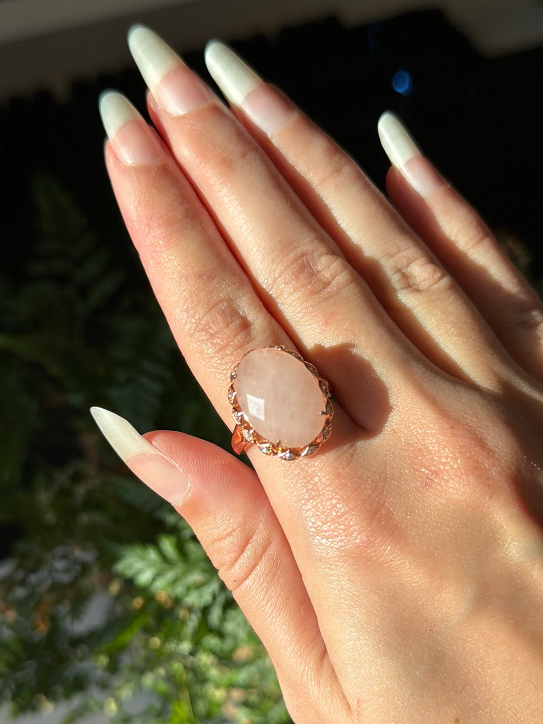Faceted Rose Gold Rose Quartz Adjustable Ring