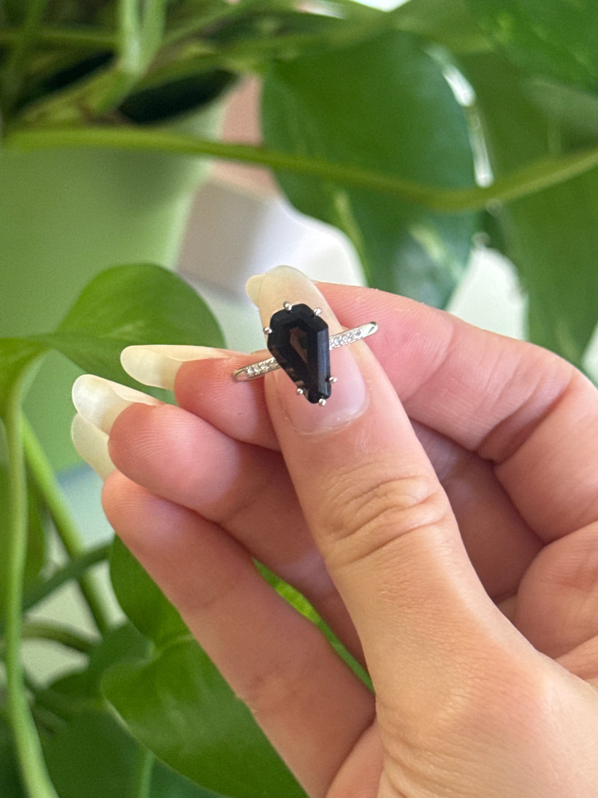 Smoky Quartz Coffin 925 Sterling Silver Adjustable Ring