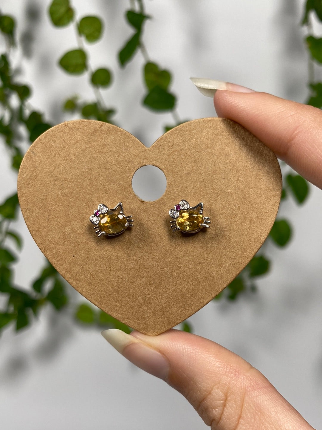 Citrine Hello Kitty Earrings